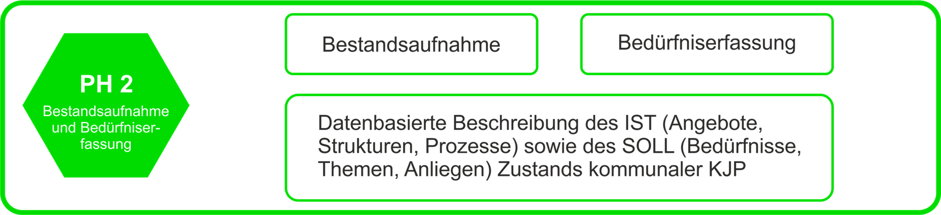 Periodische Befragung möglichst aller, die Ansprüche an die offene Jugendarbeit haben. In erster Linie ist das natürlich die Zielgruppe (Junge Menschen ab der 5. Klasse bis 25). Bei der periodischen Befragung werden auch Eltern, Gemeindebehörden, die Schulen, Vereine und Kirchen einbezogen.